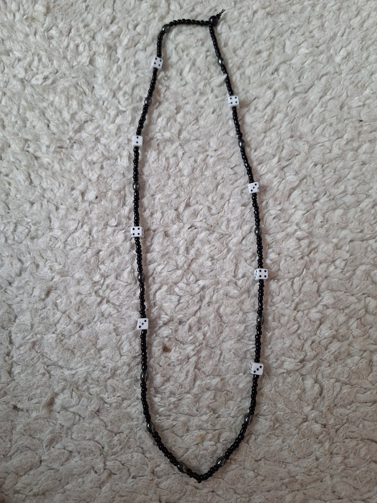 schwarze Halskette mit weißen Würfeln schwarze Halskette mit weißen Würfeln schwarze Halskette mit weißen Würfeln schwarze Halskette mit weißen Würfeln