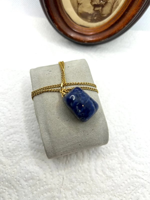 SALE Hier ist eine wunderschöne Vintage Kette Edelstahl/vergoldet (Allergikergeeignet), mit einem tollen Lapislazuli Anhänger. Länge der Kette ca. 46 cm, Größe Anhänger ca. 2 x 1,5 cm. Keine Beschädigungen, sehr guter Erhaltungszustand.