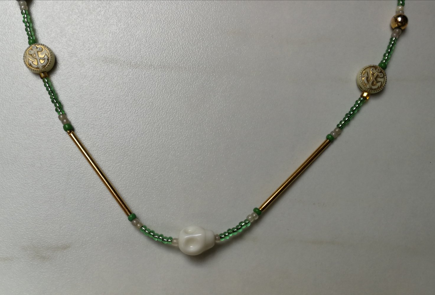 Totenkopf 90er True Vintage Perlen-Halskette Gold & Grün Anker rockige Eleganz Customschmuck