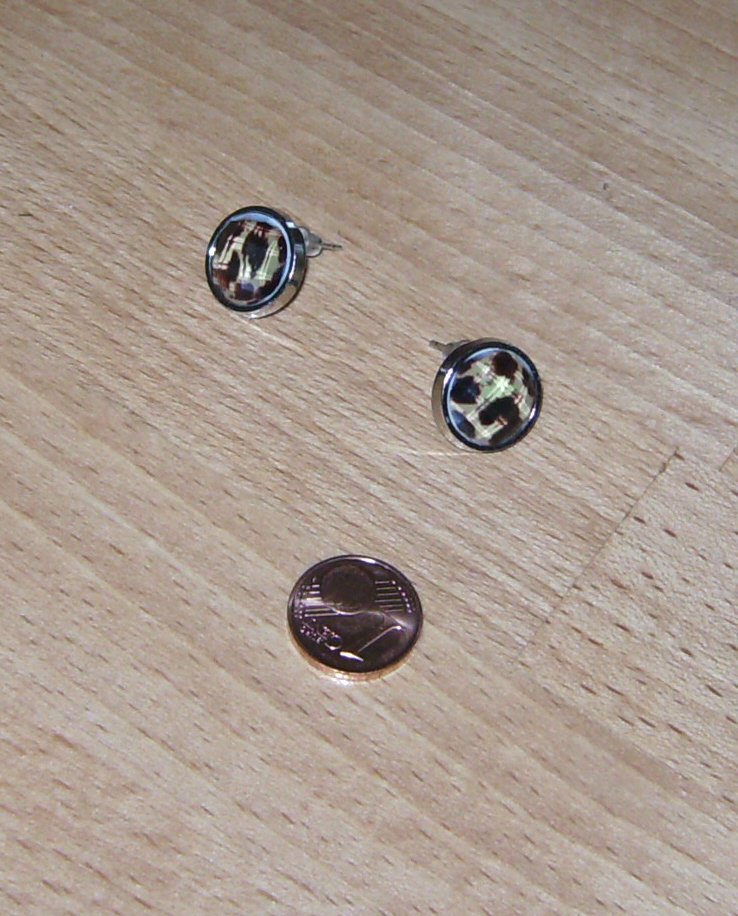 Glanz und Glamour Schimmer: Motto - Ohrstecker im Jaguar Muster/Tiger-Augen-Look. Ein Hingucker im Animal Print. Modeschmuck ca. 1,5 cm Durchmesser. Neu und Ungetragen. Plus Versandkosten.