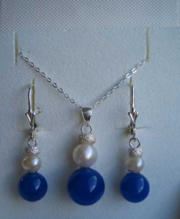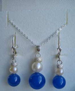 Ohrringe Blau Achat Süßwasserperle 925er Silber