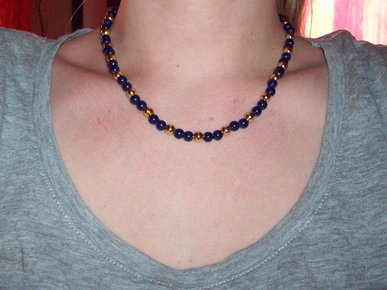 Perlenkette mit dunkelblauen und goldfarbenen Perlen, Holzperlen