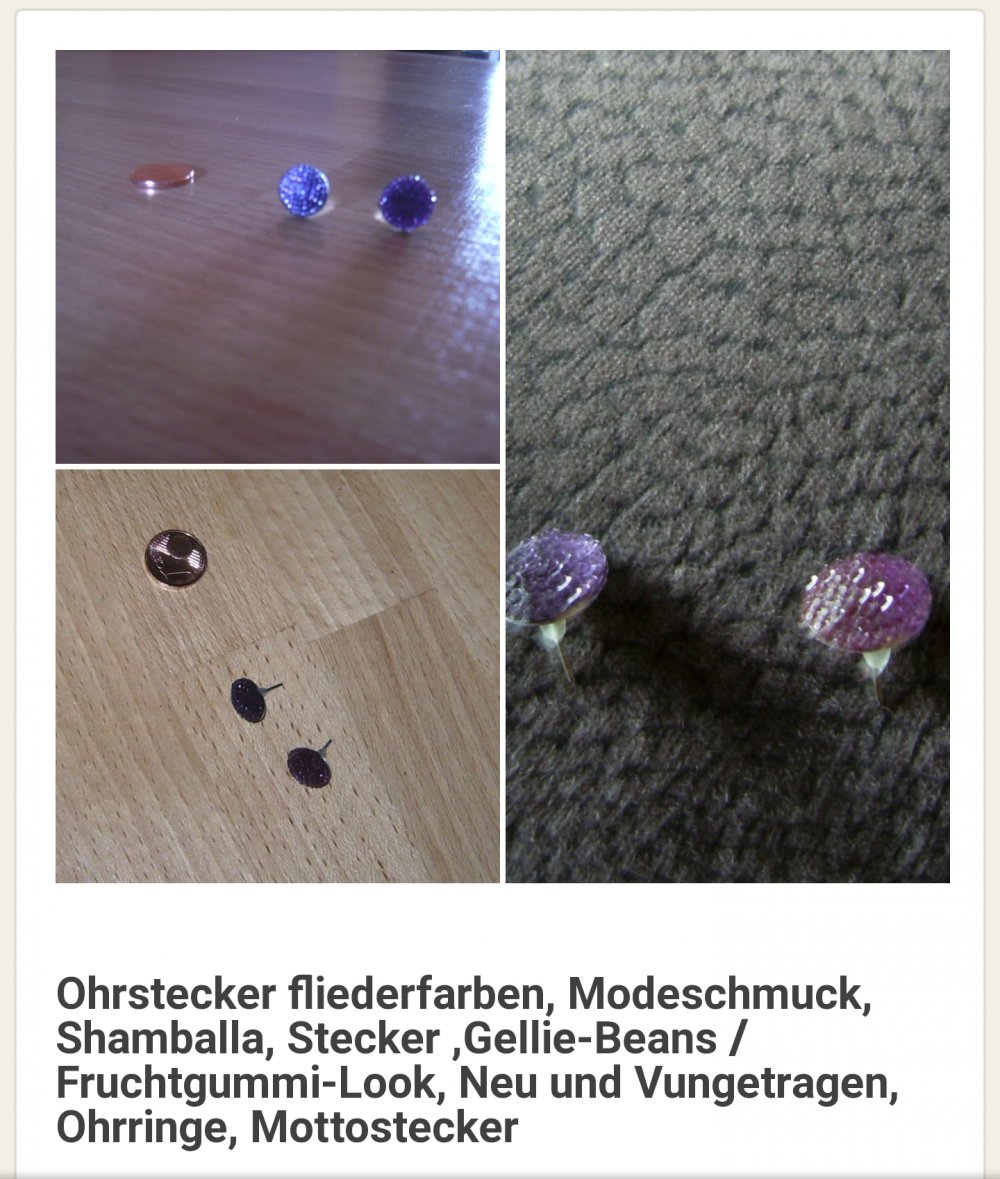 Ohrstecker fliederfarben, Modeschmuck, Shamballa, Stecker ,Gellie-Beans / Fruchtgummi-Look, Neu und Vungetragen, Ohrringe, Mottostecker