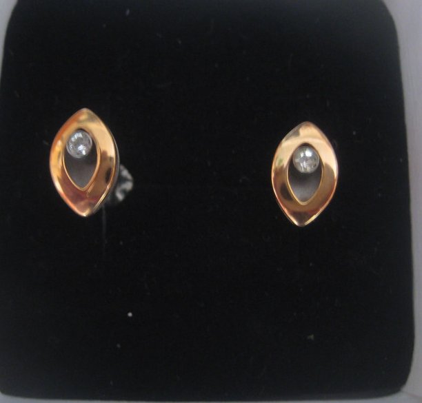 Neue stilische Ohrstecker bicolor aus Titan, teils vergoldet, in zwei Ebenen überlappend, mit einem echten Swarovski Kristall oben, oder auch unten. Die Ohrstecker sind mit einem Titan Steg in der Mitte versehen, sodass man sie drehen kann, und sich der Stein jeweils oben oder unten befindet. Titan Flügelmutter zum Verschließen. Die tollen Ohrstecker sind edel und passen in den Alltag, als steter Begleiter, wie auch für Büro und Business, oder auch zu einer Feier, und zum kleinen Schwarzen. Höhe: 1,8 cm, Breite 1 cm.