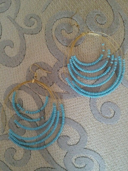 Schön sommerliche, türkis-goldene Ohrringe. Habe sie leider viel zu selten getragen, daher gebe ich sie ab! Lächeln Super Zustand!