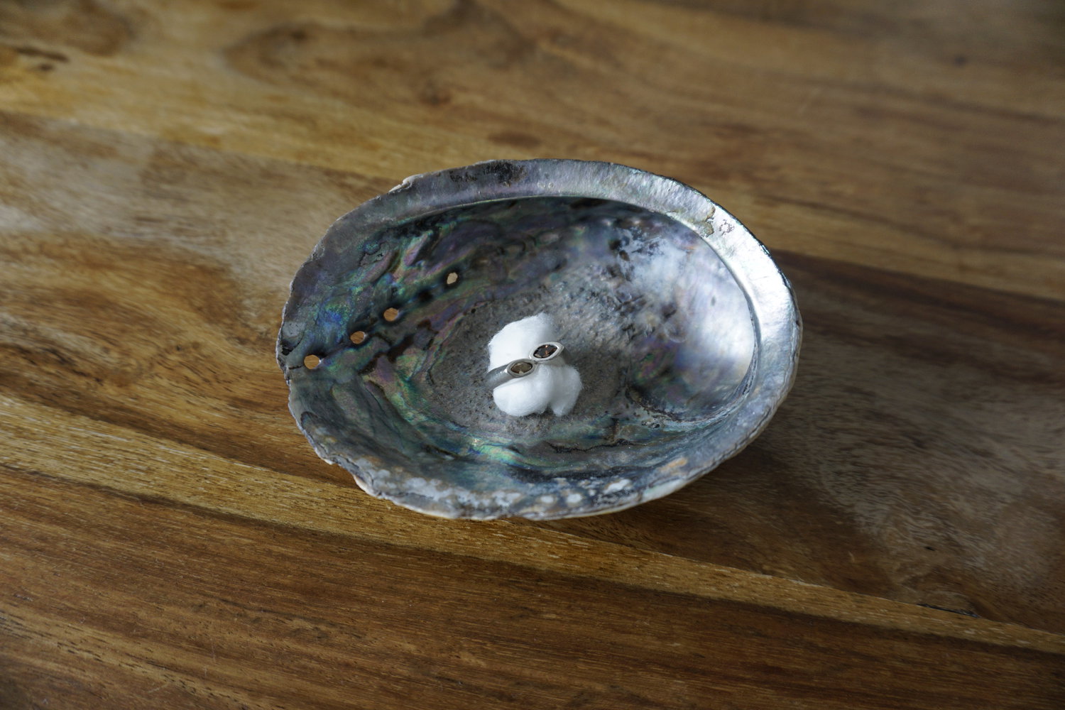 Größe 56/57. 925 Silber (Stempel vorhanden). Echte Steine (wahrscheinlich Rauchquarz und Gelber Beryll. Ganz genau weiß ich es leider nicht, aber der Abgleich mit einer Edelsteintabelle lässt den Schluss zu).