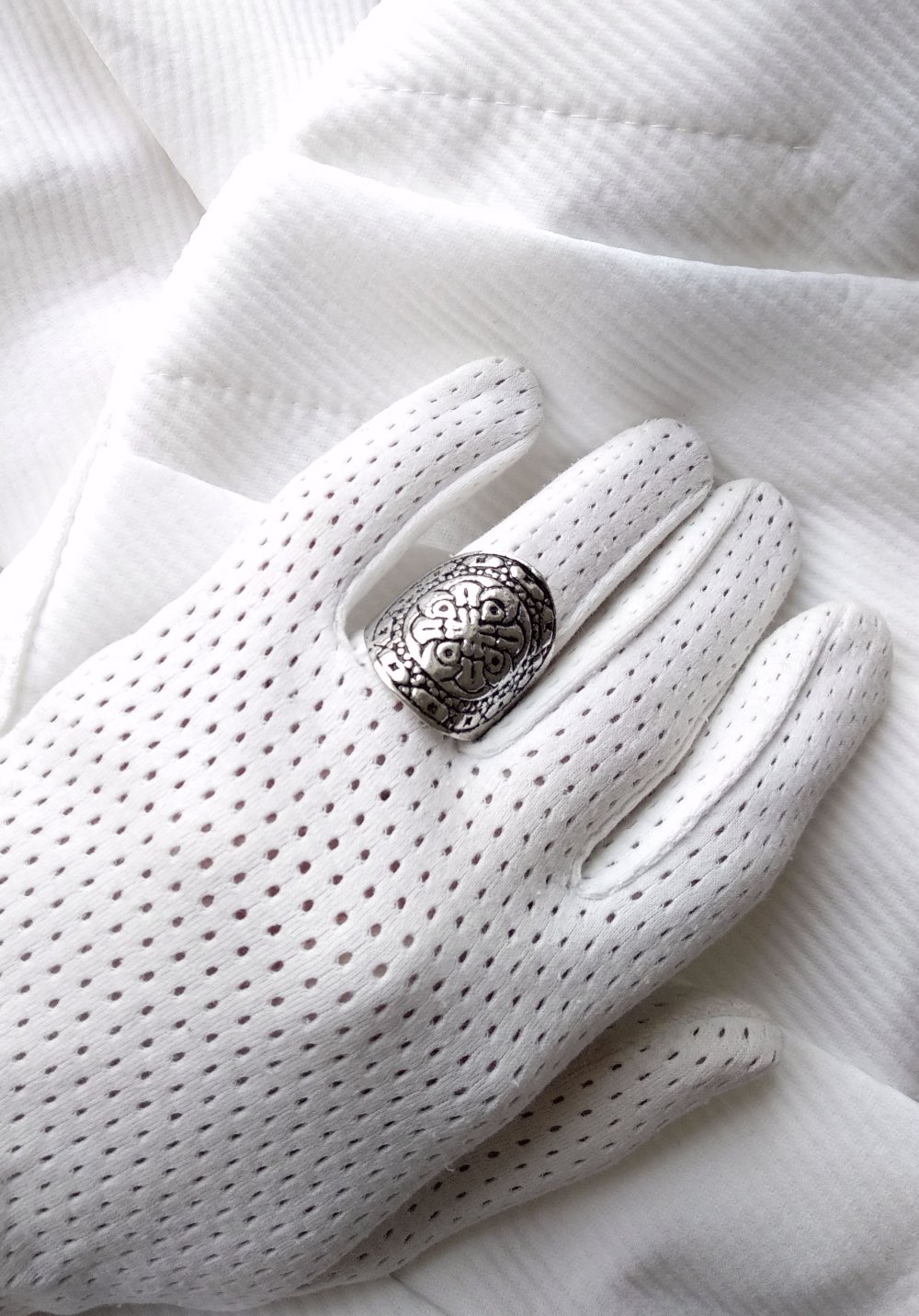 Eigenschaften: pompöser großer Ring, eingraviertes Muster (mandalaartig/witchy Ornamente)