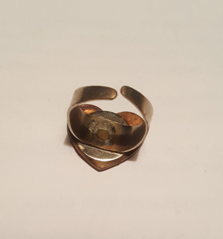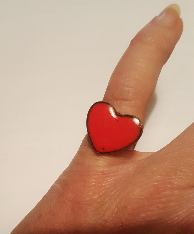 #ring #kupferfarben #herzring #bauhaus_style #emaille #rotes_herz#herzform #verstellbare_groesse #retro #schibensky #design #verstellbar_schmal #70s #xs #vintage_lover #sammlerstueck #kunsthandwerk #einzelstuecke #beschreibung_lesen