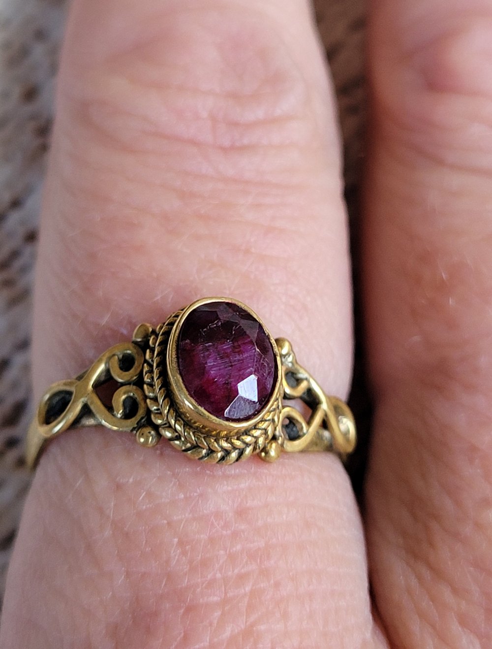 Vintage Messing Rubin Ring Stein geschliffen Hippy Gypsy Gipsy Boho Edelstein Spirit Retro Antik Mystik Alternativ gold Heilstein Steinschmuck Ethno Goa