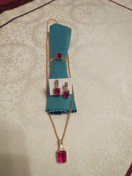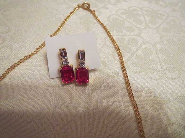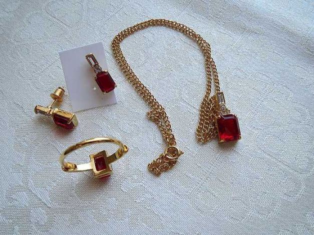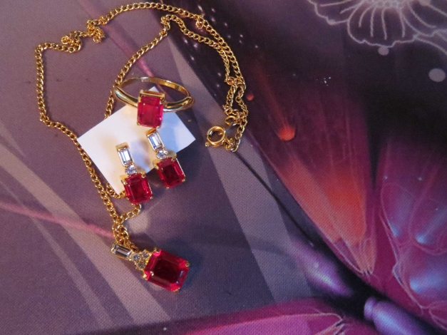 Ich biete hier sehr hübschen, neuen, ungetragenen Modeschmuck (mit klaren und roten Strassstein verziert).