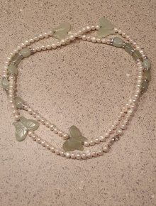 Süsswasserperlen Kette mit echten Jade Steinen und Jade Anhänger