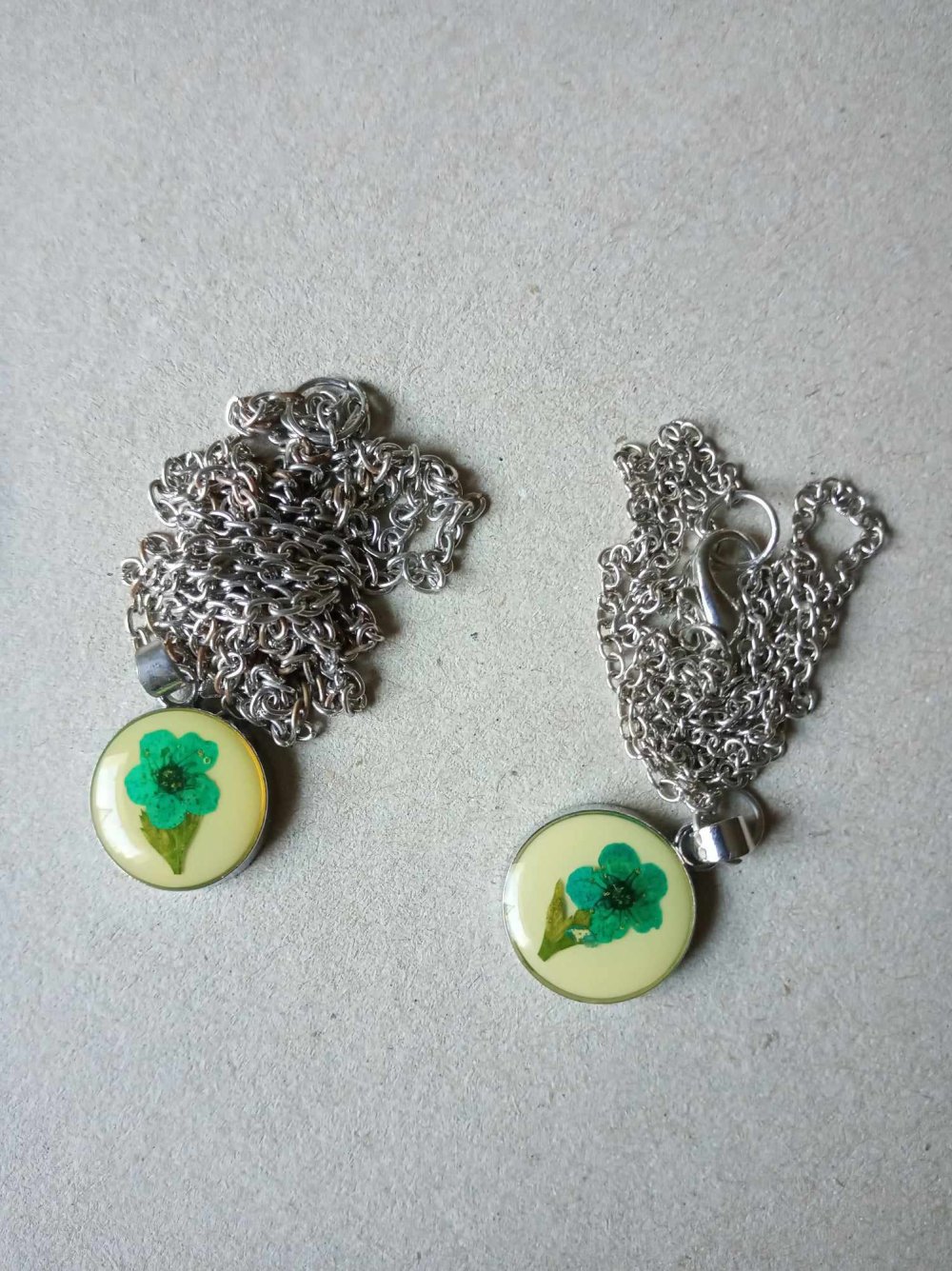 - 2x Halskette mit echtem Blümchen in Kunstharz (Vergissmeinnicht)