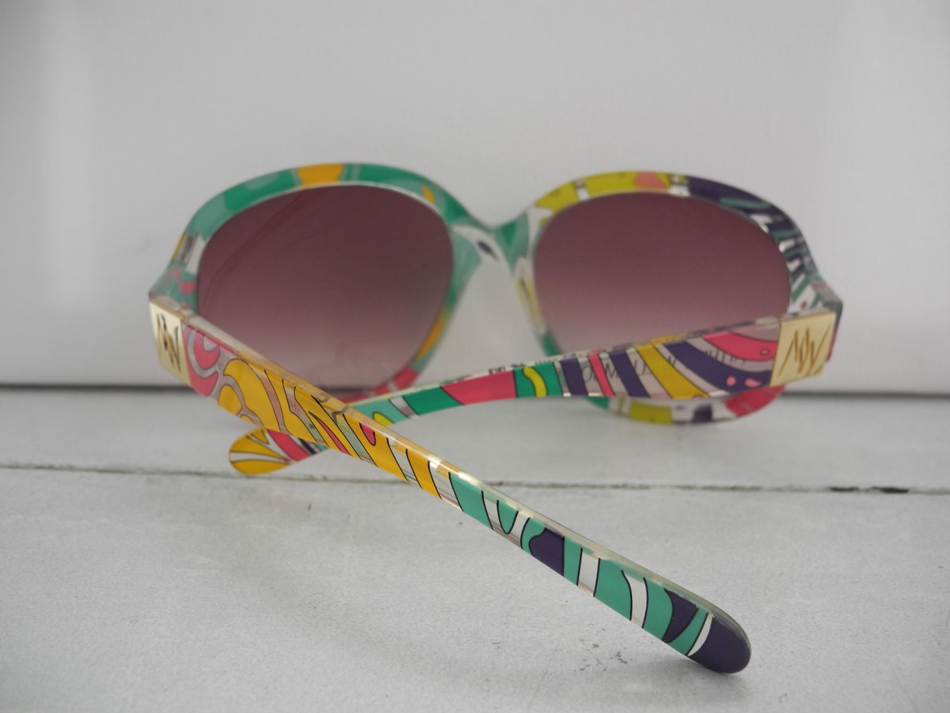 Bunte Sonnenbrille mit wildem Muster von Matthew Williamson für H&M. Sie ist schon etwas älter und hat daher Gebrauchsspuren die ich alle fotografiert habe, schaut euch also die Bilder bitte genau an! Neupreis war 40€ glaube ich. Preisvorschläge sind erwünscht!