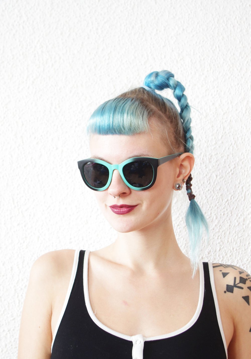 Lässige Sonnenbrille mint schwarz retro Nasty Gal Farbverlauf Technobarbie Festival