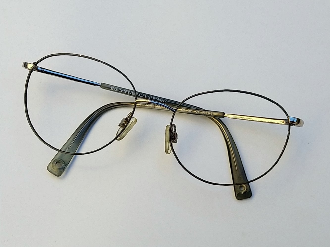 Modisches filigranes 80er Retro Brillengestell von "Brendel by Eschenbach" für Damen oder Herren. Gefertigt aus Metall mit dunkelgrünem Rahmen, Nasensteg und Bügel goldfarben glänzend. Die Brille wurde in der Vergangenheit zwar schon mal getragen, aber stets pfleglich behandelt. Daher befindet sich das Brillengestell in einem sehr guten bis guten Gebrauchtzustand, optisch sind nur minimale Gebrauchsspuren vorhanden. Da die alten Gläser bereits entfernt wurden, kann das Brillengestell gleich mit Gläsern ihrer Wahl und Stärke neu bestückt werden. Der Optiker ihres Vertrauens kann dies für Sie erledigen und das Gestell noch optimal auf Ihre Gesicht- und Kopfgröße anpassen.