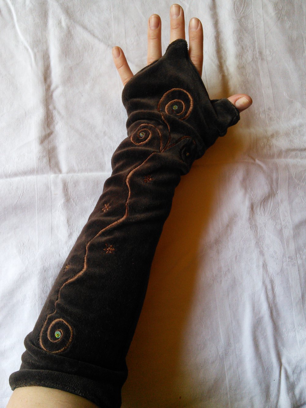 Die Stulpen sind schön bestickt mit Ornamenten und Pailletten. Figur den Daumen gibt es einen separaten Teil für den Daumen und eine Schlaufe für den Mittelfinger. Sehr weiches Material.