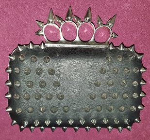 Handtasche, Clutch mit Nieten und Deko-Schlagring, Kunstleder, Gothic, Punk, Metal