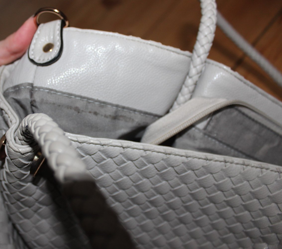 Sie lag seitdem eine Weile im Kasten und riecht evtl. etwas nach Rauch (Raucherwohnung...). Ich werde aber versuchen die Tasche auszulüften, um den Geruch abzumildern bzw. hoffentlich zu entfernen. Weiters fiel mir beim Fotografieren eine leichte Verfärbung des Futterstoffes auf. Ich hab‘ keine Ahnung, woher diese stammen könnte.