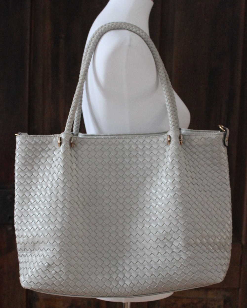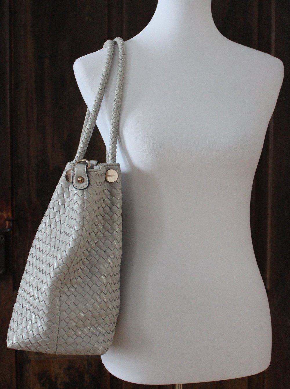 „gewebte“ Sommertasche in hellgrau aus Kunstleder
