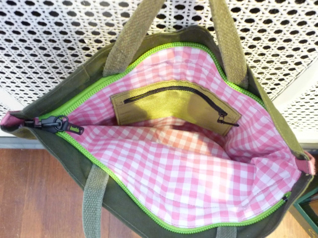 Innenfutter rosa/weiß-kariert.