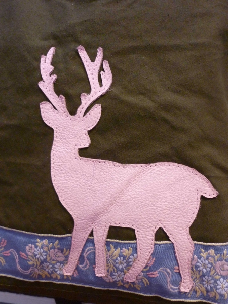 hellblau/rosa Borte und zartrosa Lederhirsch.