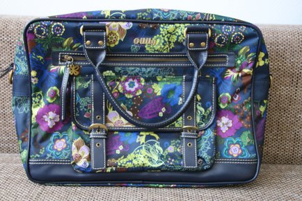Laoptoptasche von Oilily mit zwei Tragegriffen. Zur Tasche gehört außerdem ein Umhängeriemen. Vorne ist die Tasche mit zwei Außenfächern ausgestattet, hinten mit einem großen Fach. Innen gibt es ein gepolstertes Laptopfach, sechs Einsteckfächer, eine kleine Reißverschlusstasche sowie eine Möglichkeit um Stifte einzustecken. Die Tasche ist vollständig mit einem Reißverschluss verschließbar. Maße: Breite ca. 42 cm, Höhe ca. 28 cm, Tiefe ca. 10 cm.
