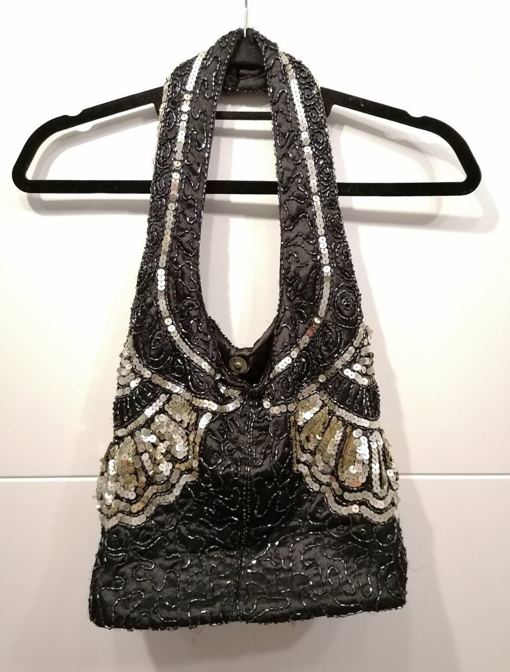 #Tasche, Handtasche, Bowling-Bag, Kunstleder, schwarz, Steinchen