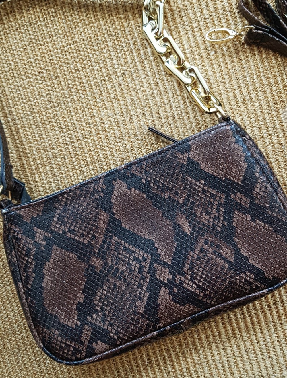 Kleine Umhängetasche Tasche Schlangen Muster braun