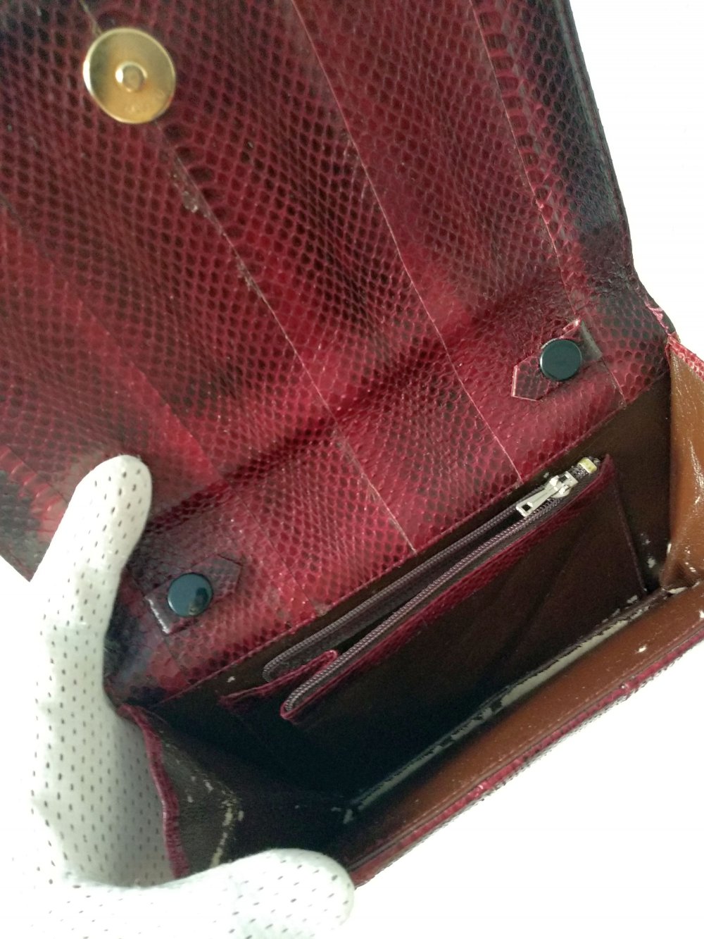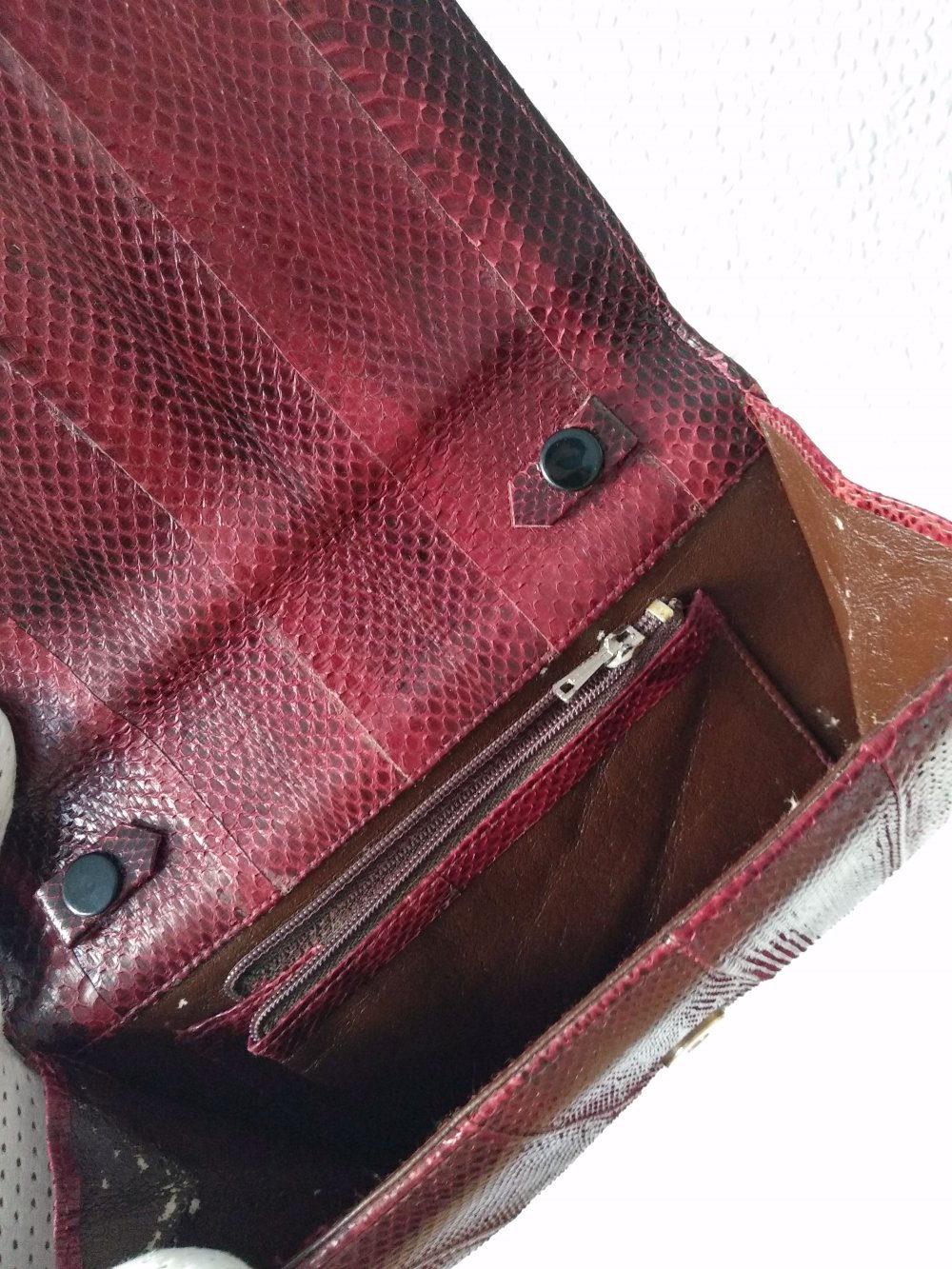 Dunkelrote Vintage Clutch Handtasche 80er Kunstleder Magnetverschluss Snakeskin Optik