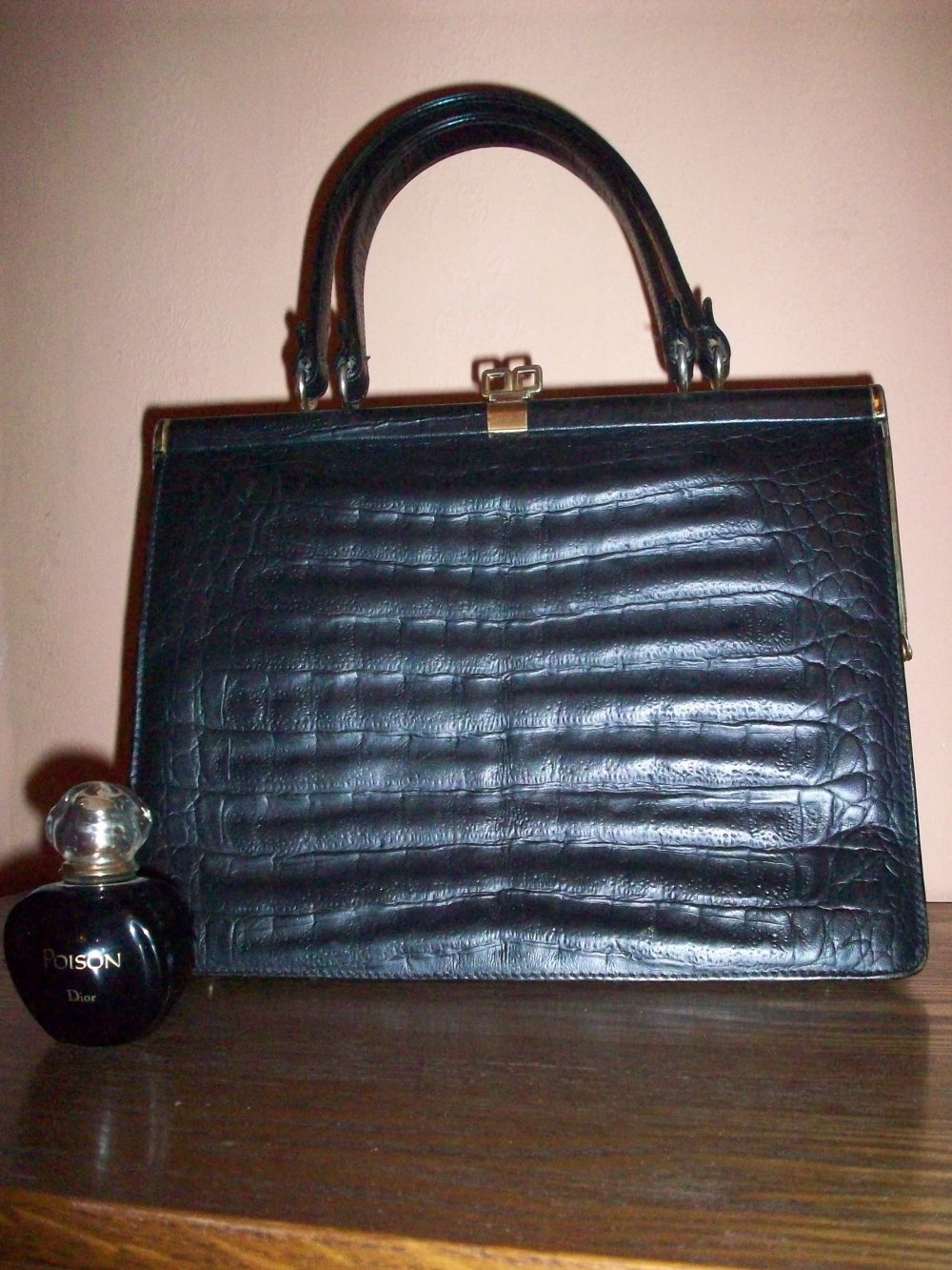 Diese schöne Tasche ist ein Original aus den 70gern..nach meinem besten Wissen und Gewissen besteht sie aus Aalleder. Schappverschluss und extra Einstecktasche im Vorderbereich.Füßchen zum Aufstellen, damit das Leder nicht beschädigt wird...Innenbereich siehst Du auf dem Pic..