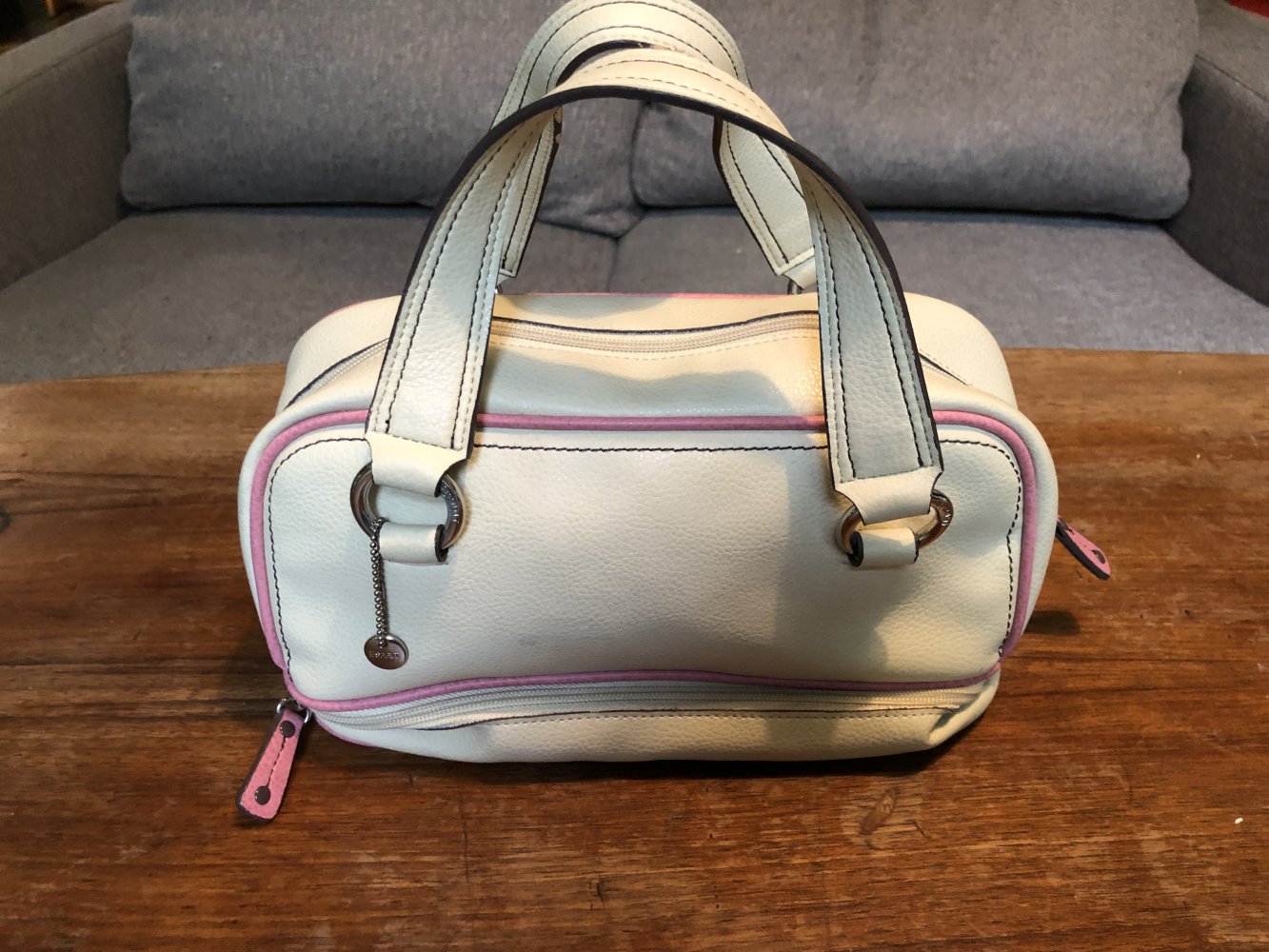 Süße Handtasche mit mehreren Innenräume und einem separatem unteren Bereich mit Reißverschluss. Die Tasche ist gebraucht, siehe Bilder. Bei Fragen gerne melden. Genaue Maße nach Interesse