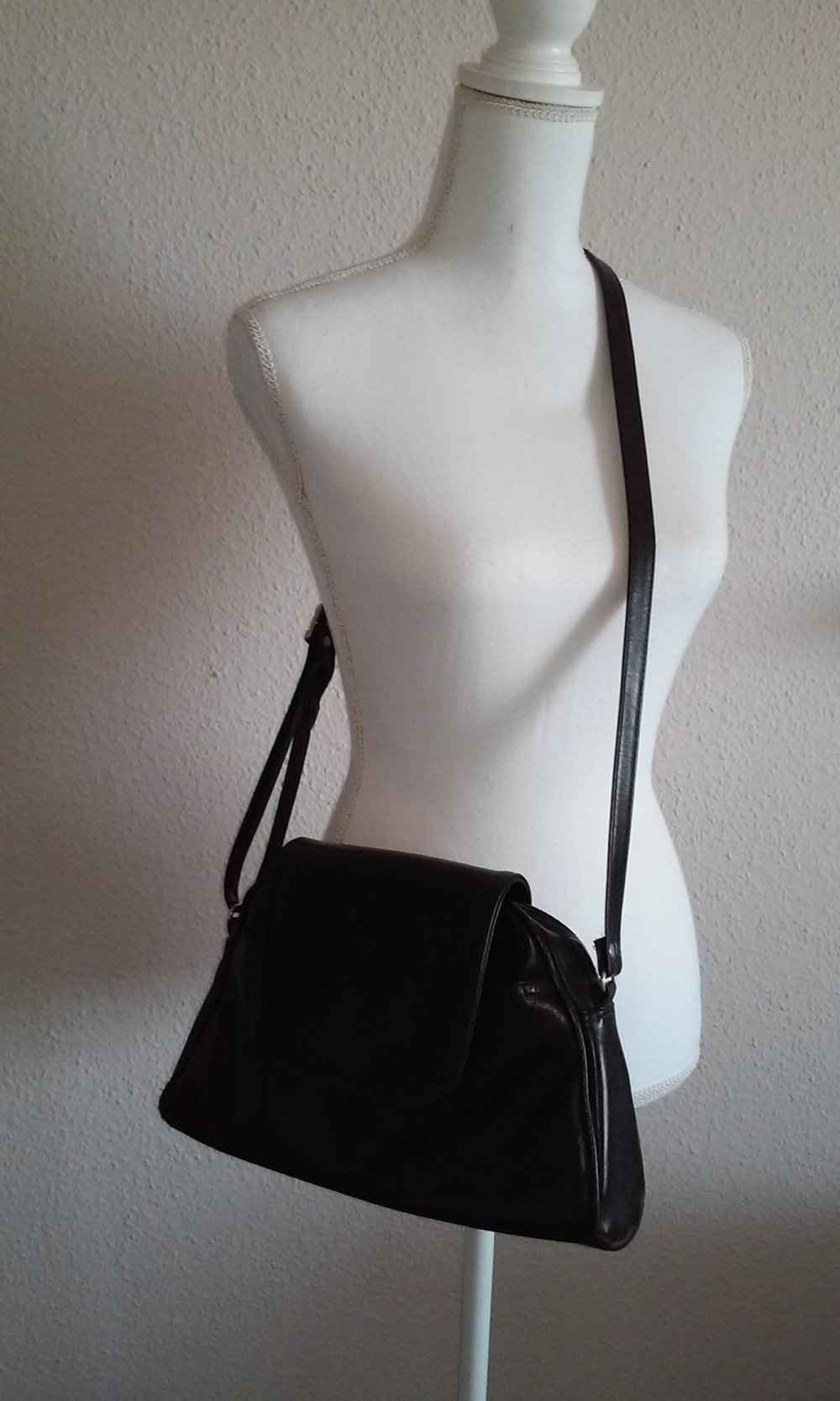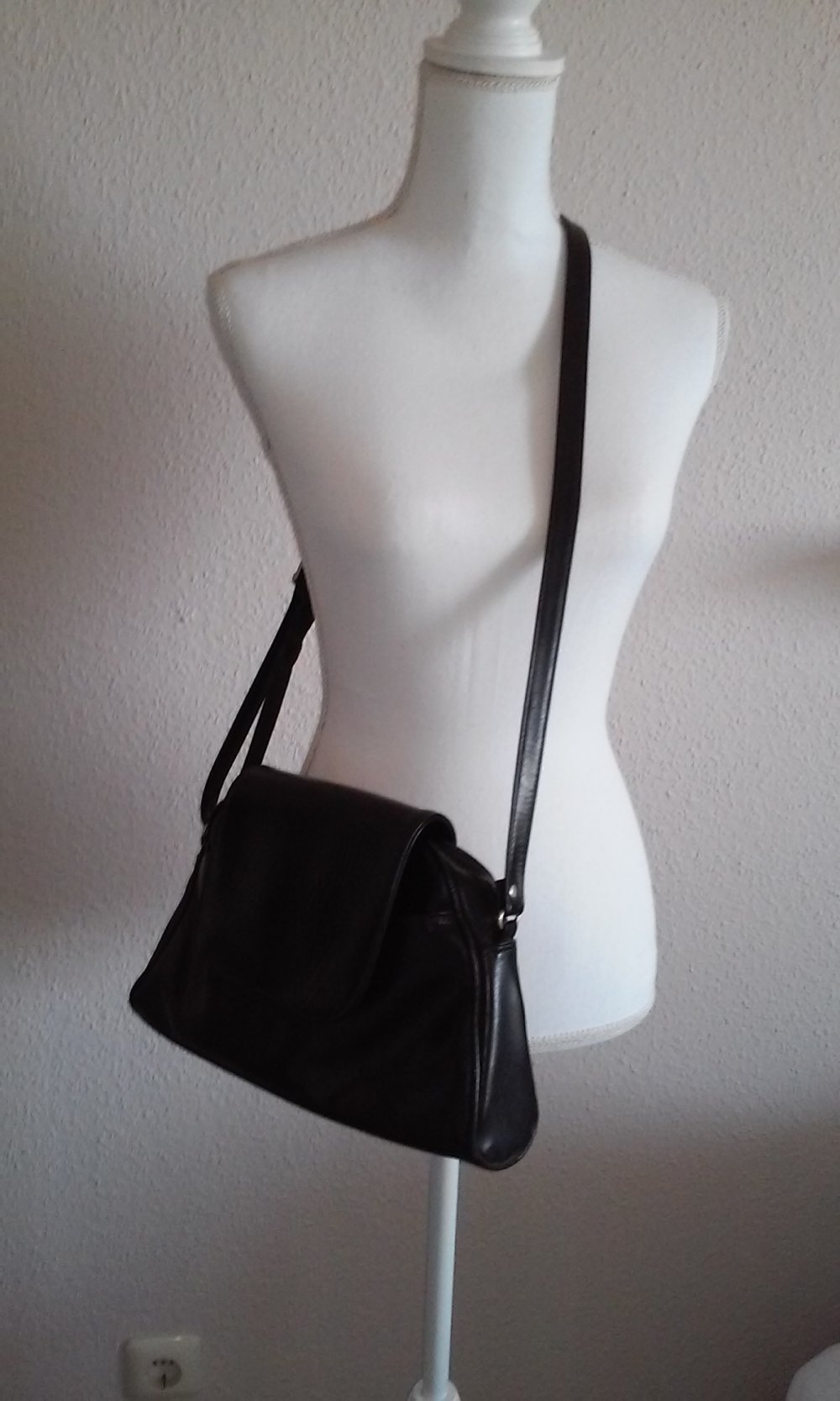 kleine Ledertasche schwarz / braun mit langem Tragegurt, ideal zum Weggehen
