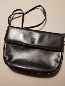 Kleine Ledertasche (auch innen mit Leder gefüttert), schwarz.