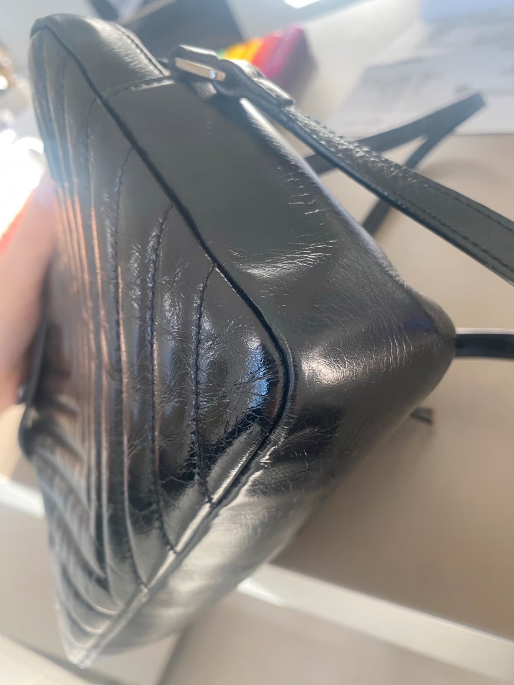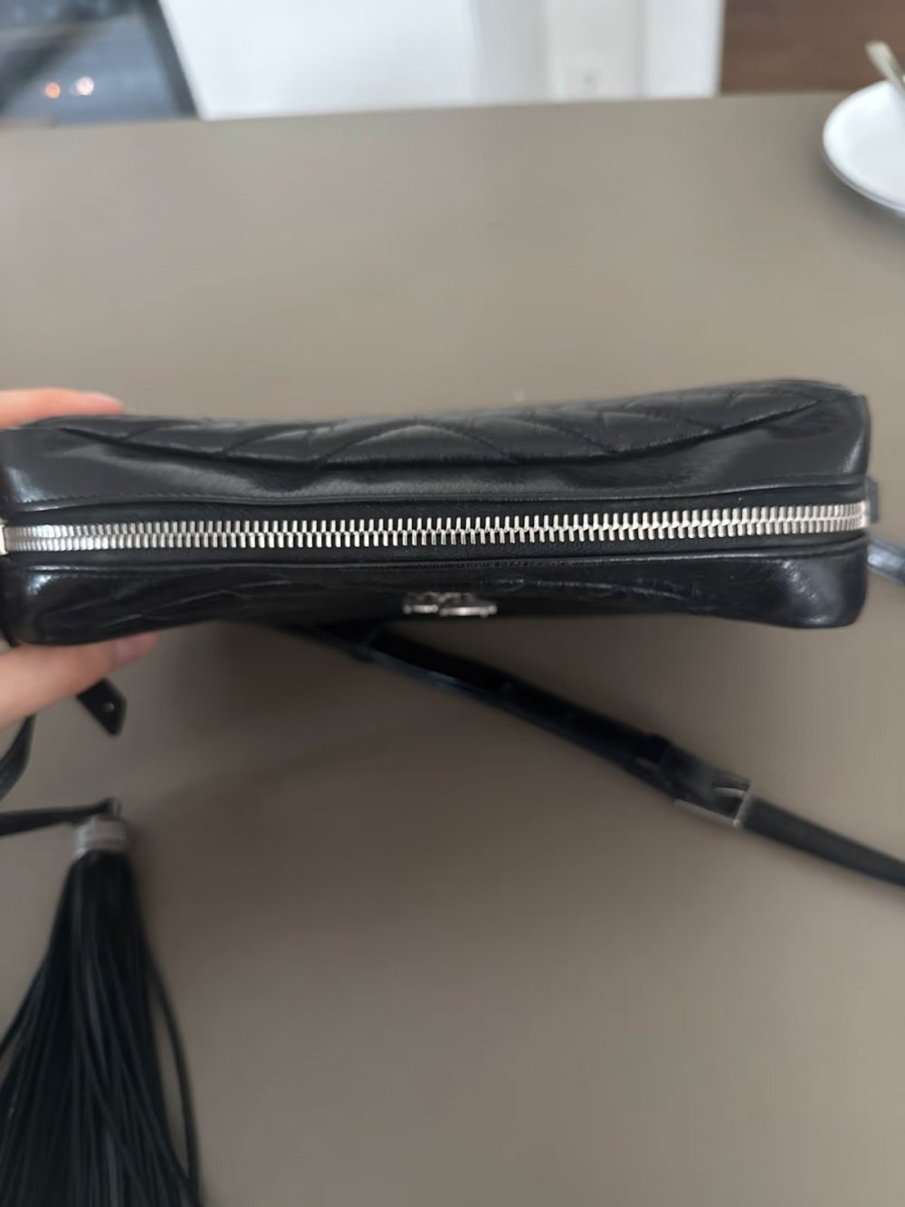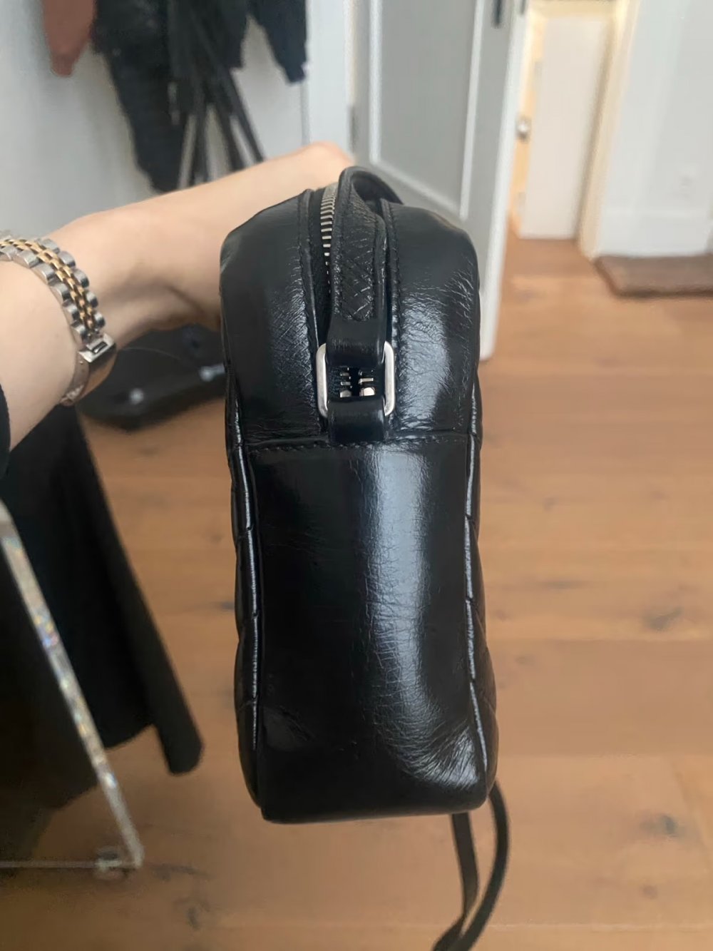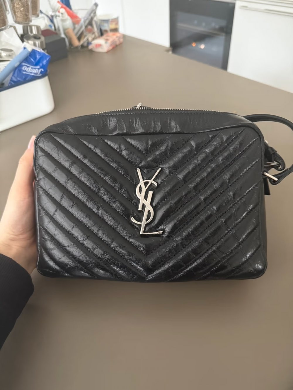 YSL Saint Laurent Camera Bag Lou in Schwarz Crinkle + Aged Silver - die perfekte Umhängetasche für stilbewusste Damen mit toller Alltagstauglichkeit (sowohl Leder als auch Metall sind sehr unempfindlich und mega cool!).