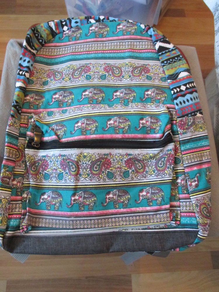 wir haben ihn mal gekauft haben ihn aber nie gebraucht , aber vielleicht mag jemand elefanten muster und sucht einen rucksack für sich