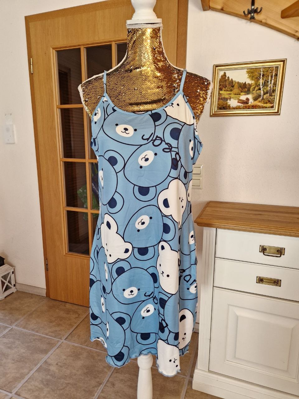 Blaues Nachthemd. Nachtwäsche. Kleid.