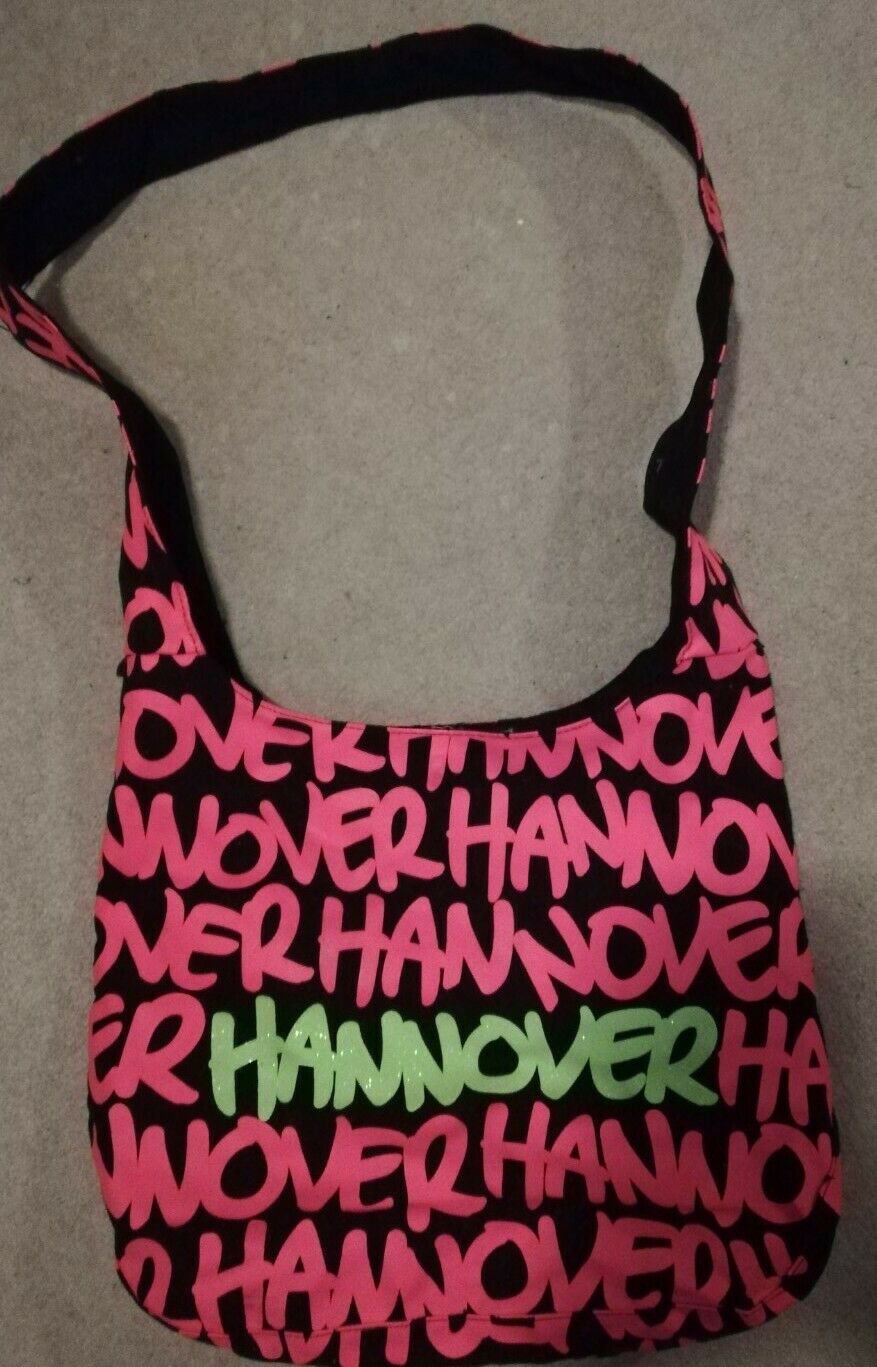 Schwarze Umhängetasche mit Hannover Aufdruck in Neon, wie neu, unbenutzt. Zustand: Gebraucht. Versand als Deutsche Post Warensendung.
