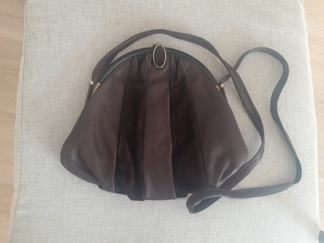 braune elegante Vintage Umhängetasche mit goldfarbenem Schiebeverschluss (siehe Fotos)