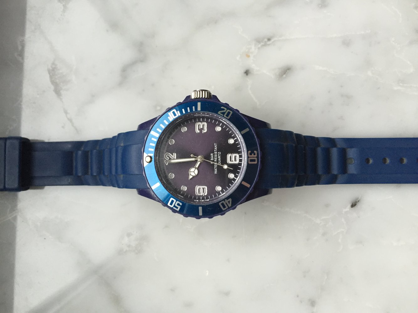 neue armbanduhr, blau / bunt, glitzer, steinchen, bänder, geflochten