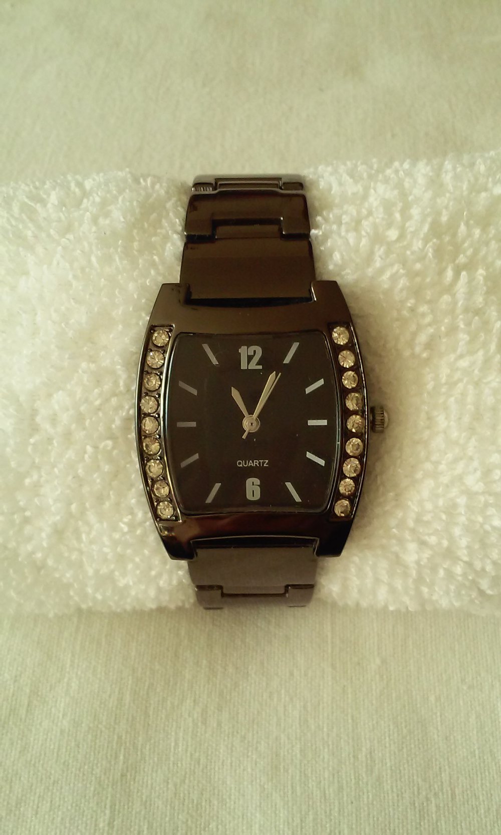 Armbanduhr Quarzuhr mit Strasssteinen Faltschließe neue Batterie!
