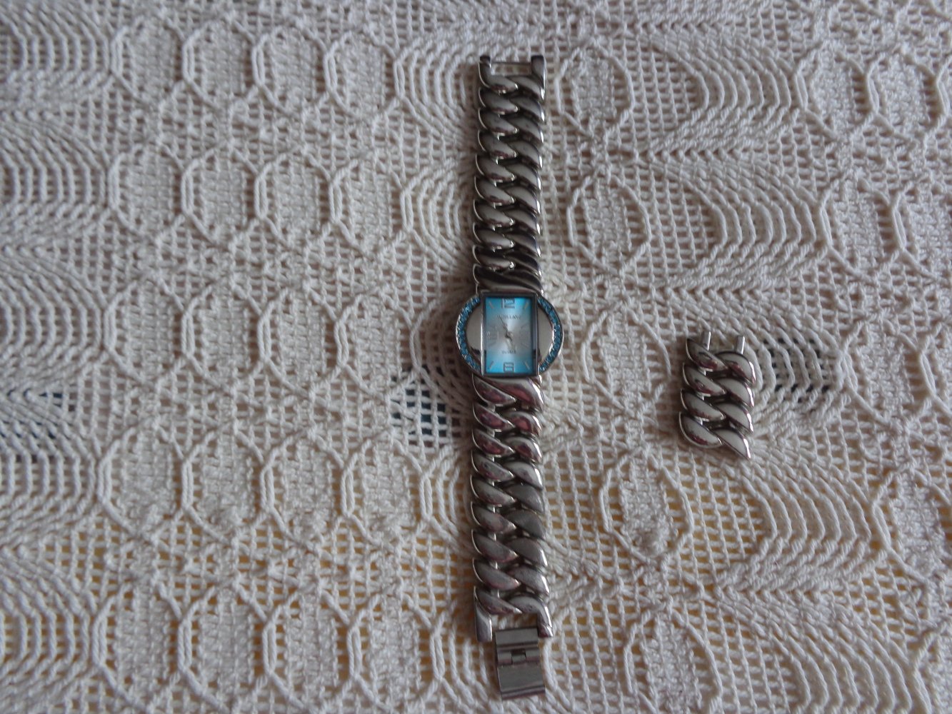 hübsche Damen-Quartz-Armbanduhr, Modeschmuck-Uhr, neue Batterie, Ziffernblatt-Breite ca. 3 cm, Gesamtlänge ca. 17 cm, Person hat schmale Hand-Gelenke, die herausgenommenen Glieder gebe ich dazu, die Schnalle ist etwas stumpf geworden, 17,00 Euro, Versand/Warensendung 2,00 Euro möglich, zeitnahe Antwort, Privatverkauf, Rücknahme ausgeschlossen (1177 - 1179, nur für mich)
