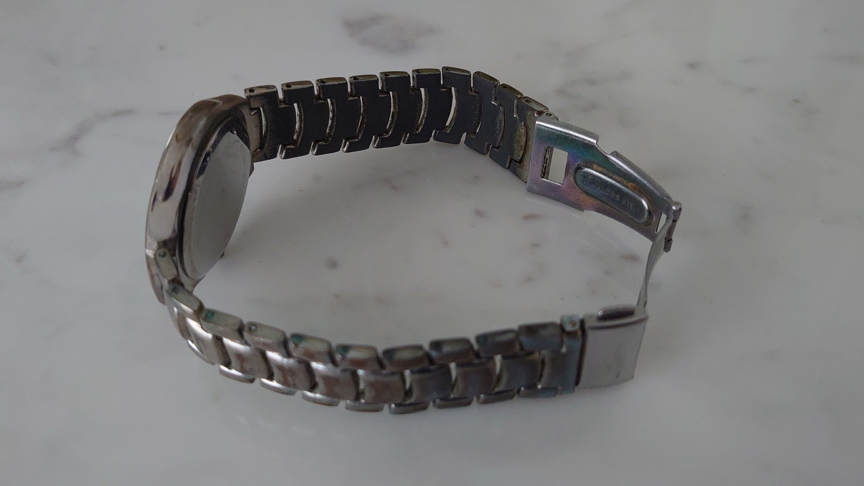 und auf der Rückseite der Uhr ist ein Kratzer am Gehäuse