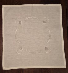 Tischdecke alt Stickerei weiß 63 cm x 67 cm