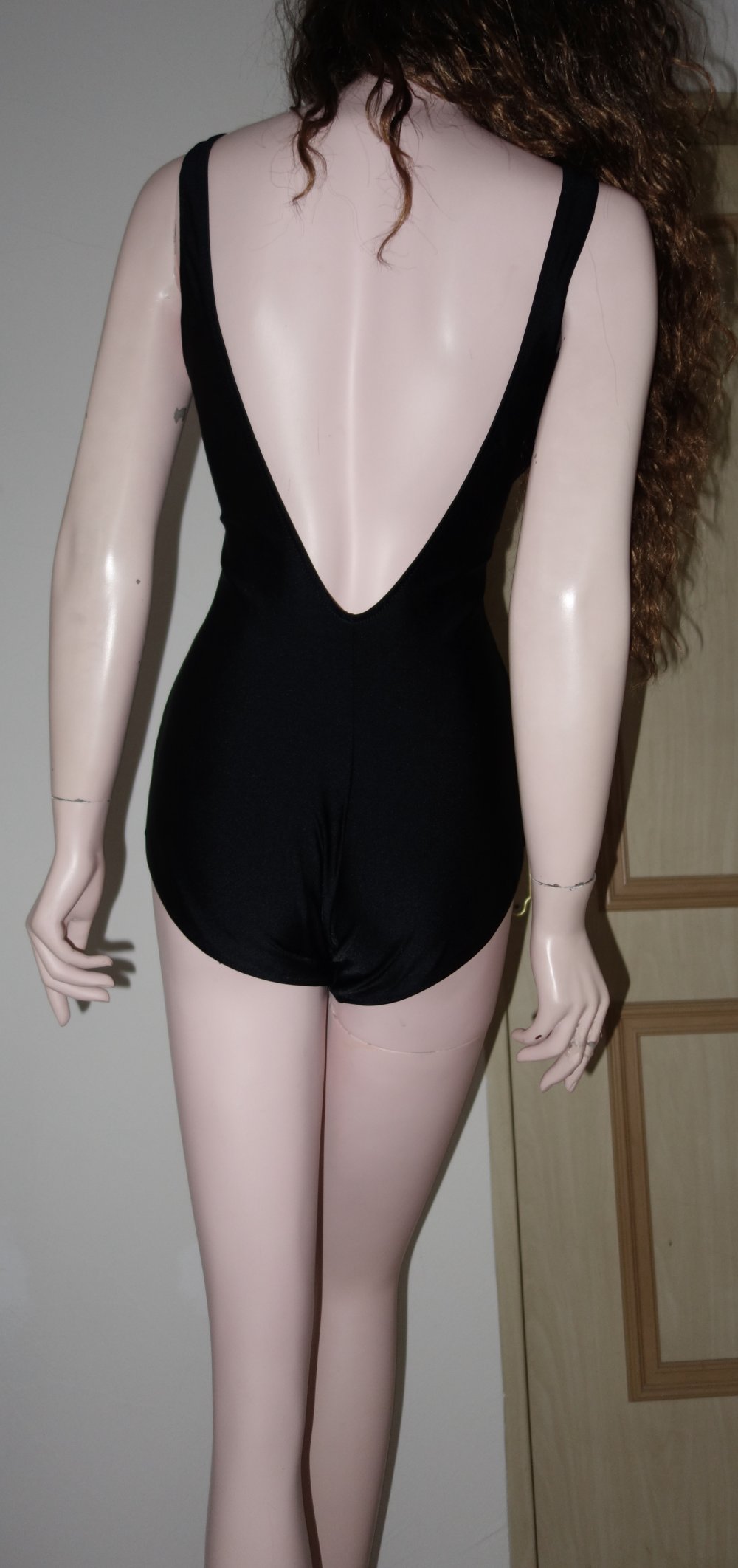 Badeanzug "G", Gr. ist mit 46 angegeben, entspricht aber ca. 42, Cup B, 80% Polyamid 20% Elasthan, Futter: 88% Polyamid 12% Elasthan, am Ausschnitt vorne mit Biesen, langer Rückenausschnitt, kein hoher Beinausschnitt. Länge ca. 68 cm, von Achsel zu Achsel einfach ungedehnt ca. 40 cm.