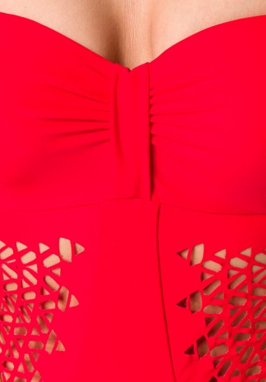 NEU mit ETIKETT * Sexy * ausgefallen * Cut Outs * Lace-Ausstanzungen * Lochspitze * Badeanzug * Body * Einteiler "Jasenia" Gr. 36- 38/ S * rot *