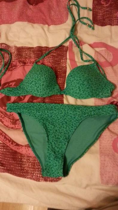 Farbe kommt auf den Fotos leider nicht richtig zur Geltung. In Real ist der Bikini schön grün. ( Etwa eine Mischung zwischen dem ersten und den anderen Fotos)