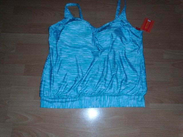 Biete hier ein Tankinioberteil von Octopus in Größe 50 an. Es ist mit Gr. 56 angegeben, aber es fällt deutlich kleiner aus, ich gebe unten noch die Maße an. das Oberteil ist türkis-weiß gemustert und hat verstellbare Träger. Unten hat es einen Bund und fällt so schön locker über dem Bauch. Mit eingearbeiteten Softcups und Unterbrustgummizug für eonen guten Halt der Brust. Das Oberteil ist neu, ungetragen und mit Etikett versehen. Durch den Urlaub leider die Umtauschfrist versäumt.
