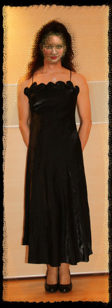 langes schwarzglänzendes Abendkleid