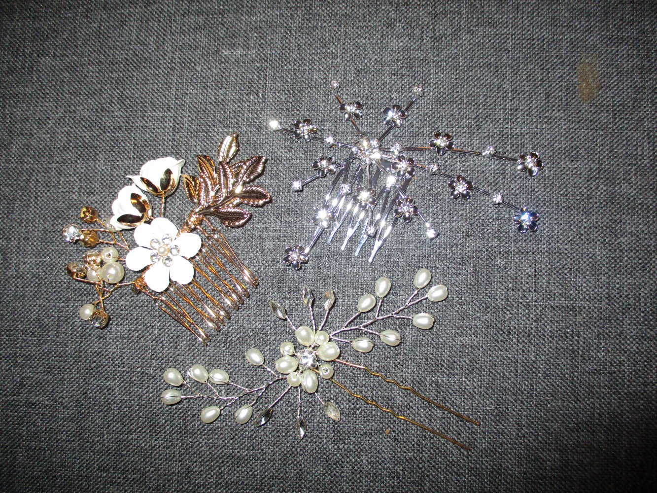 neuer 3 teiliger haarschmuck.in silberfarben,goldfarben,mit blumen,steinchen und perlen.sehr schön und besonderst toll zu feierlichkeiten,feste,hochzeit,kommunion usw perfekt.