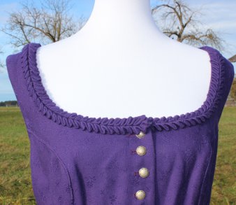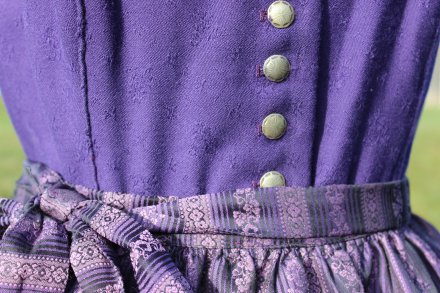 dunkellila True Vintagedirndl aus Wollstoff mit Blumenmuster, ca. Größe 42, Unikat